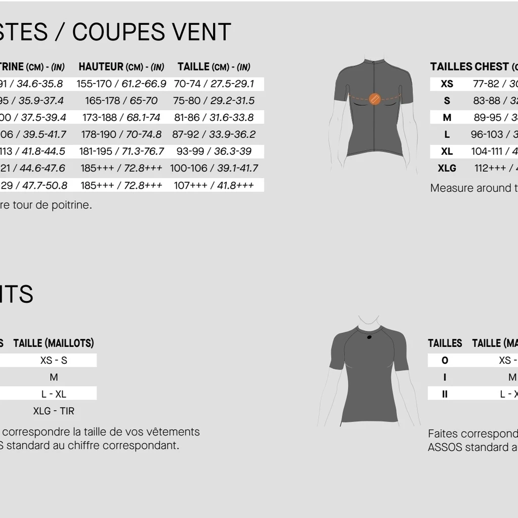 | Tailles textile | XXS/XS, S/M, L/XL, XXL/XXXL |