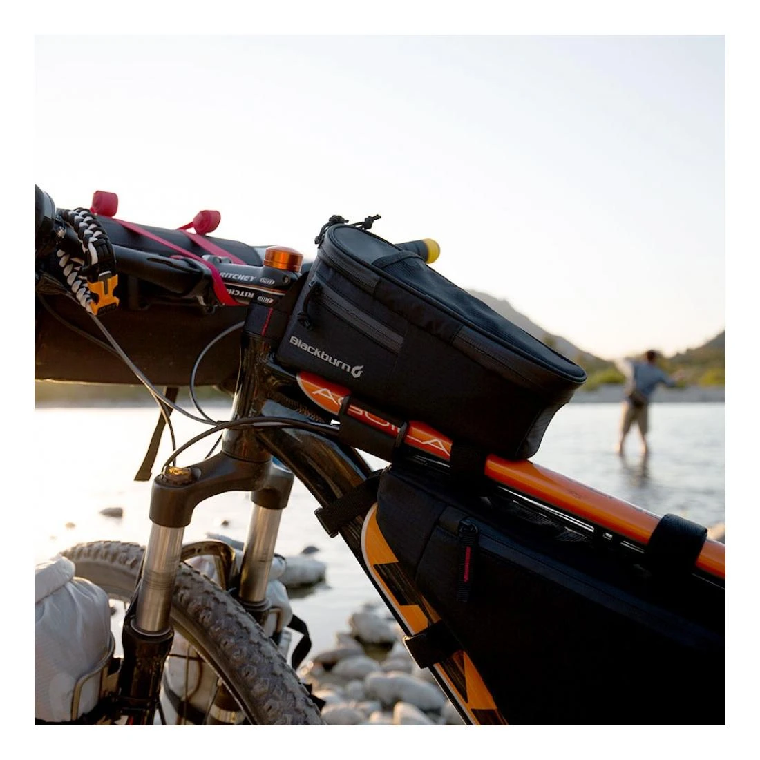 Compacte, étanche et surtout très légère cette saccoche se fixe sur le tube superieur du cadre via des velcros et permet de stocker vos affaires imortantes a portée de main.