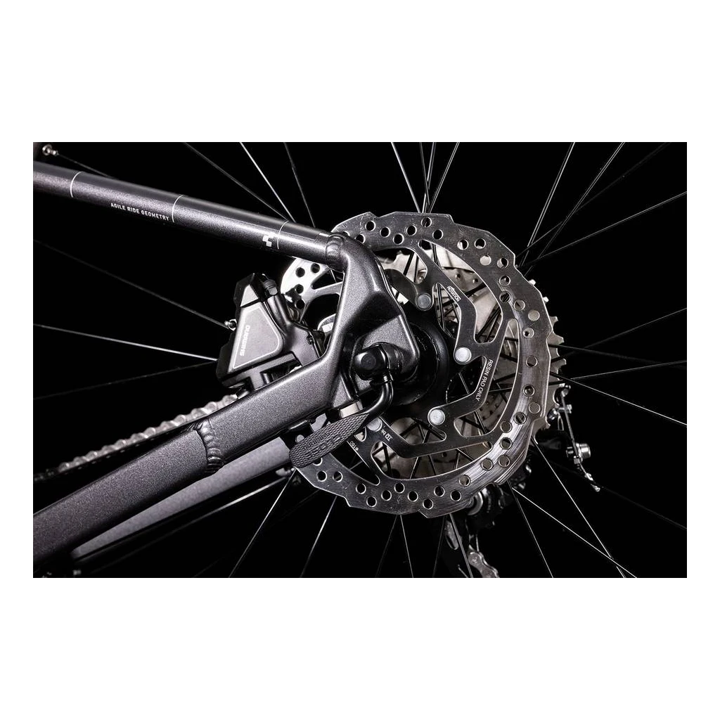 Sans sacrifier son budget, le Cube Aim Ex propose un équipement et des composants solides, fiables et durables. C’est le cas notamment avec le cintre Rise Trail Bar de largeur 680mm dont l’efficacité permet une maniabilité évidente dans les singlestracks. Aussi, la selle Natural Fit Venec Lite et les roues Cube ZX20 améliorent le confort et les sensations de pilotage. Ces dernières sont proposées en « Size Split » c’est à dire en format 27,5 pouces pour les tailles XS et S contre 29 pouces pour les tailles de M à XXL.