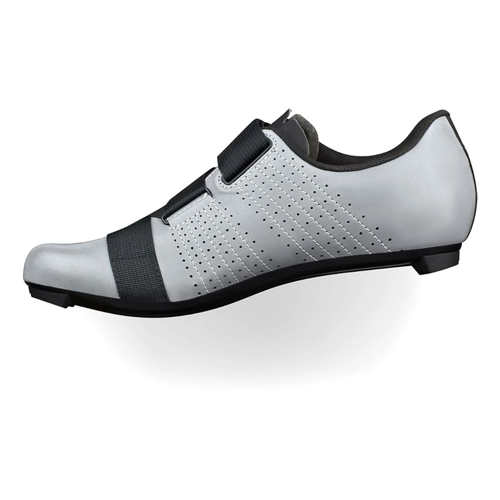 Les chaussures de vélo sur route pour homme FIZIK Tempo R5 Powerstrap s’adaptent aux conditions changeantes et sont particulièrement adaptées aux luminosités basses. La structure réflective apporte effectivement une touche de visibilité très appréciée pour rouler de nuit. Les autres usagers de la route peuvent ainsi voir distinctement le mouvement des jambes et ainsi adapter leur vitesse lors du dépassement de l’athlète.