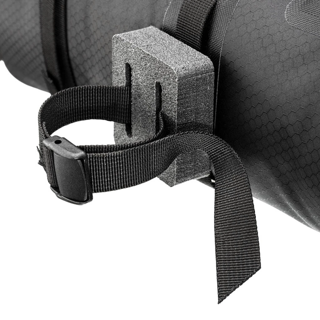 Le système de montage est composé d’entretoises et de deux sangles avec, des fermetures auto-agrippantes très adhérentes sur la face inférieure. Il garantit une fixation parfaitement stable. Un renfort en plastique à l’intérieur du sac et une fixation au tube de pilotage confèrent une excellente stabilité, sur tous les terrains.