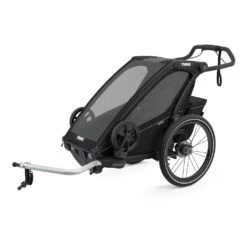 Pour acceuillir un enfant en toute sécurité, ce chariot se démarque par une conception irréprochable et encore plus confortable. Les sièges confortables et matelassés donnent une douceur d’assise au bambin tandis que la suspension réglable amortira les vibrations de la route et des chemins. Les fenetres latérales amovibles s’assurent du panorama tandis que l’espace de chargement conviendra à un enfant de 22 kgs. L’arrière peut-être facilement modulé dans le cadre d’une utilisation en course à pied. Dans ce cas, le freinage à disque peut être activé d’une seule main pour faciliter l’effort. Des éclairages apportent en prallèle un signal lumineux judicieux pour se démarquer des autres usagers de la route.
