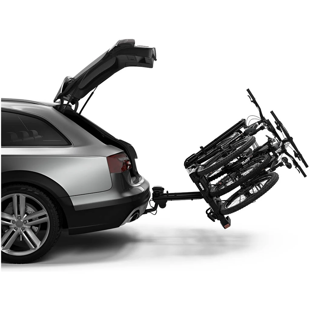 Ce porte vélos est entièrement pliable pour un montage, une utilisation et un rangement faciles. Il possède une grande capacité de chargement permettant le transport de vélos électriques et de VTT. Grâce aux bras de fixation amovibles avec limiteur de couple de serrage Thule AcuTight verrouillable, qui émet un clic lorsque le serrage optimal est atteint.